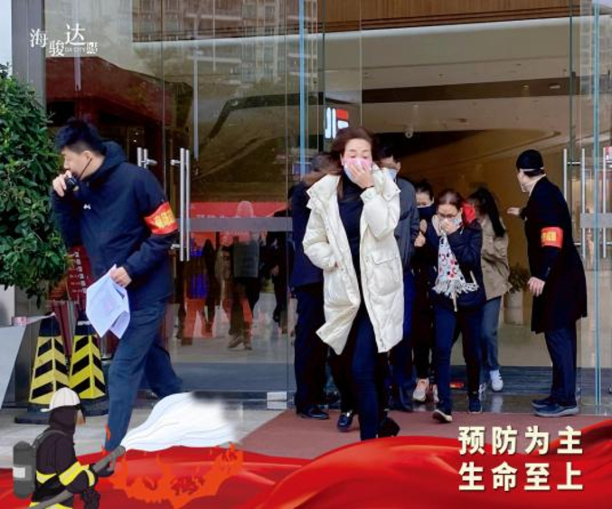 在消防逃生演練部分,部門的負責人及工作人員給各參與人員講解了逃生的技巧。警報響起后,在現場工作人員的指引下,各人員彎起腰用毛巾捂著鼻子,安全有序地從逃生出口逃生到空曠地方。