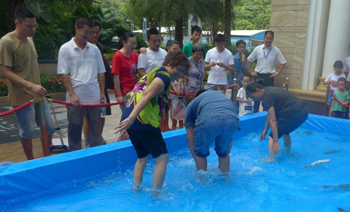 在本次活動中最激動人心的就要數(shù)捕魚達(dá)人游戲了,在幾十平方米大的水池,放的都是兩斤以上的大魚,人們紛紛排隊進(jìn)水池捕魚,只要在限定時間內(nèi)抓到就是自己的啦??!