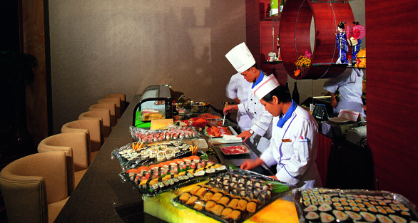 萬國料理西餐廳裝修時尚高雅,內設鐵板燒餐區、壽司吧、鐵板燒貴賓房、法式貴賓房,是您請客、聚會、商談的理想之地。由從業超過廿年的西餐大師楊建國總廚主理,歐美餐點、法國私房菜、日本料理等一系列異國風味令您如同置身于奇妙國度。
